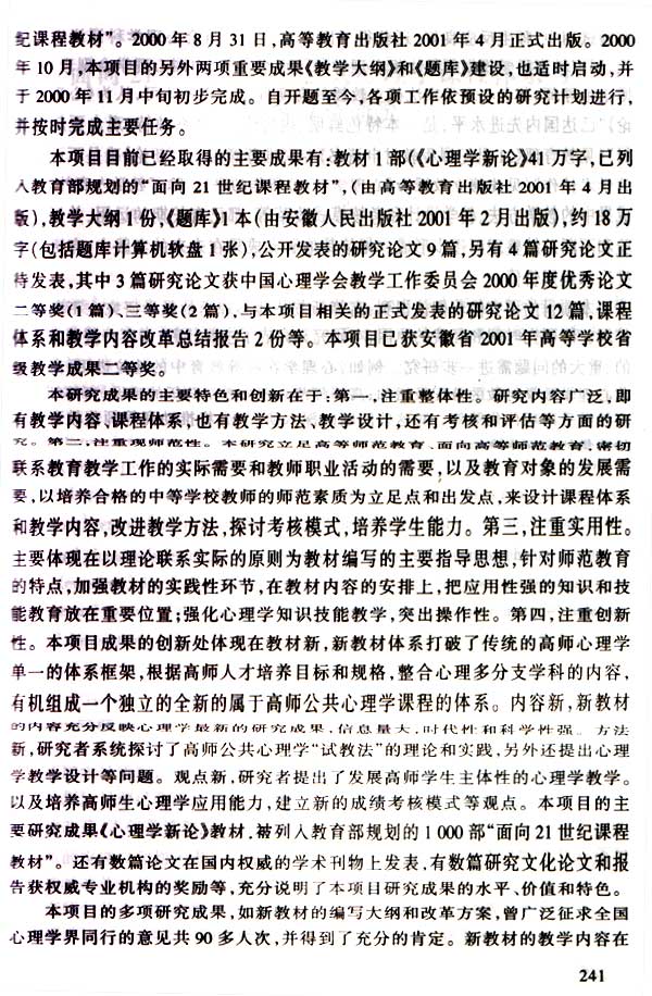 〈〈高师公共心理学教程整体改革的研究与实践〉〉2